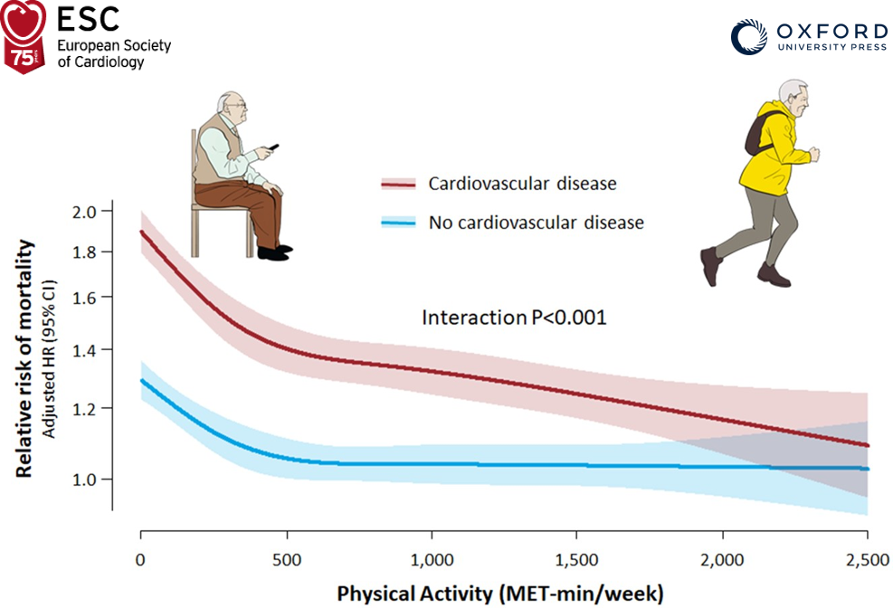 Inoltre, mentre gli individui “sani” hanno beneficiato maggiormente tra 1 e 500 MET-min/settimana di attività fisica, il beneficio in quelli con malattia cardiovascolare è continuato anche al di sopra di quella soglia e il loro rischio di mortalità per un ammontare di almeno 1000 MET-min/settimana era significativamente più basso rispetto ai sani sedentari